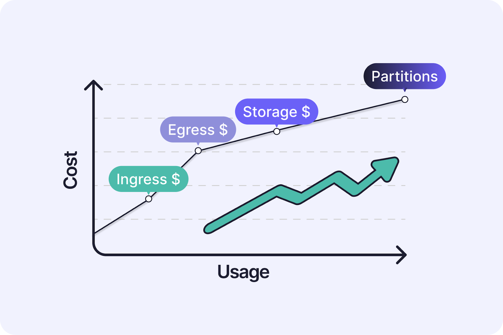 - Ingress and Egress Throughput – This refers to the amount of data entering and leaving Kafka. The more data you stream, the more you pay—especially during traffic spikes or high-volume operations.